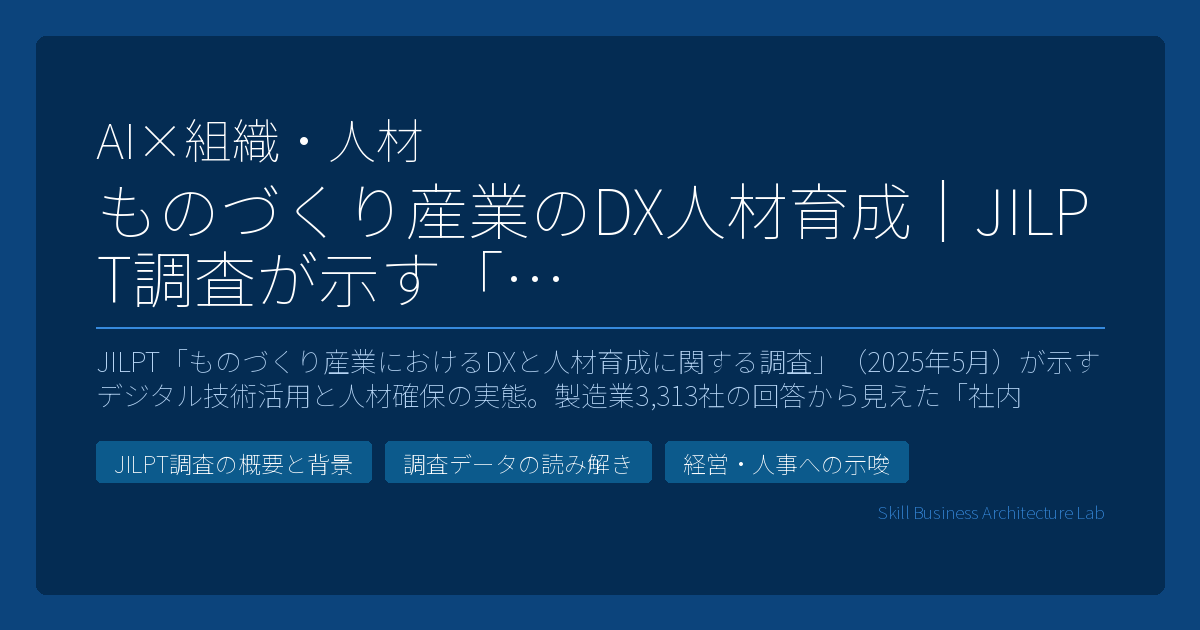 JILPT「ものづくり産業におけるDXと人材育成に関する調査」が示したのは、デジタル技術を活用している製造業の多くが「新たな採用」ではなく「社内人材の活用・育成」を選択しているという実態でした。