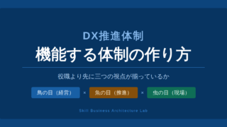 中小企業のDX推進体制の作り方を整理します。経営層のコミットメントやスモールチーム結成という通説に加え、鳥の目・虫の目・魚の目という三つの視点がかみ合う体制設計の条件を解説します。